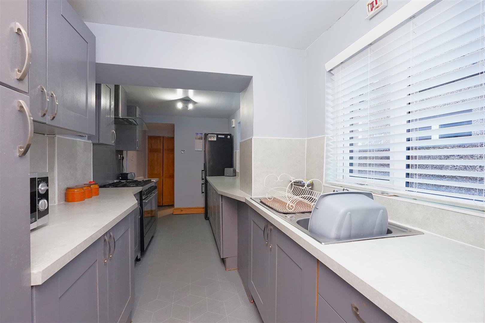 From here, the home flows into a modern grey kitchen, thoughtfully designed with both style and functionality in mind. It features a range cooker that will appeal to keen cooks, along with ample workspace and storage. At the far end of the kitchen, you’ll find a convenient utility room, offering additional practicality for laundry and household tasks. Externally, the property enjoys a tidy rear yard, providing a private outdoor area suitable for seating, potted plants, or simple low-maintenance enjoyment.