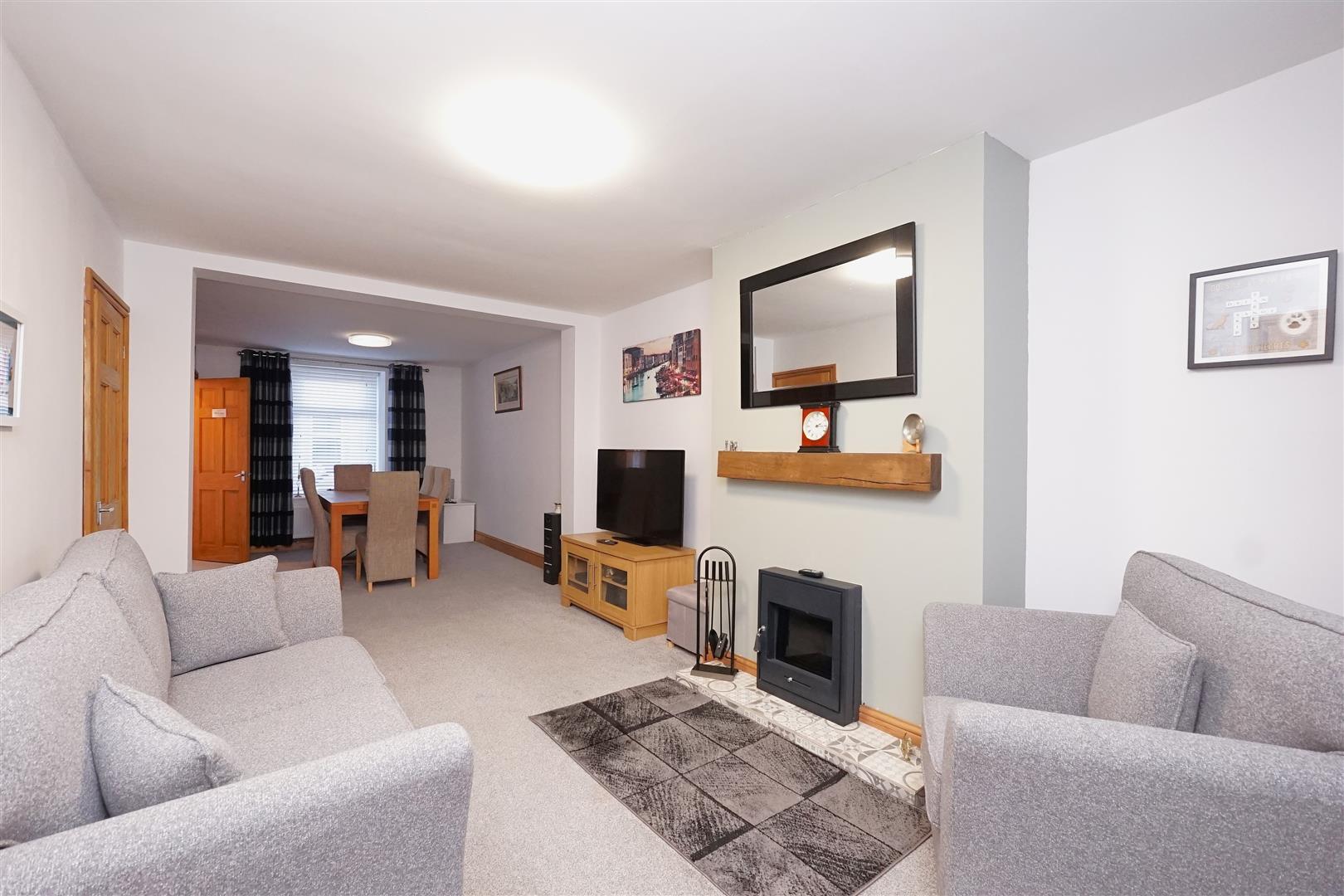 Upon entering the property, you are welcomed into a practical vestibule that provides the perfect space for coats and shoes before stepping through to the main living areas. This leads into a generous dining room, an ideal setting for family meals or entertaining guests. An attractive archway invites you into the cosy lounge beyond, where a charming electric wood-burning effect stove creates a warm and inviting focal point—perfect for relaxing evenings.