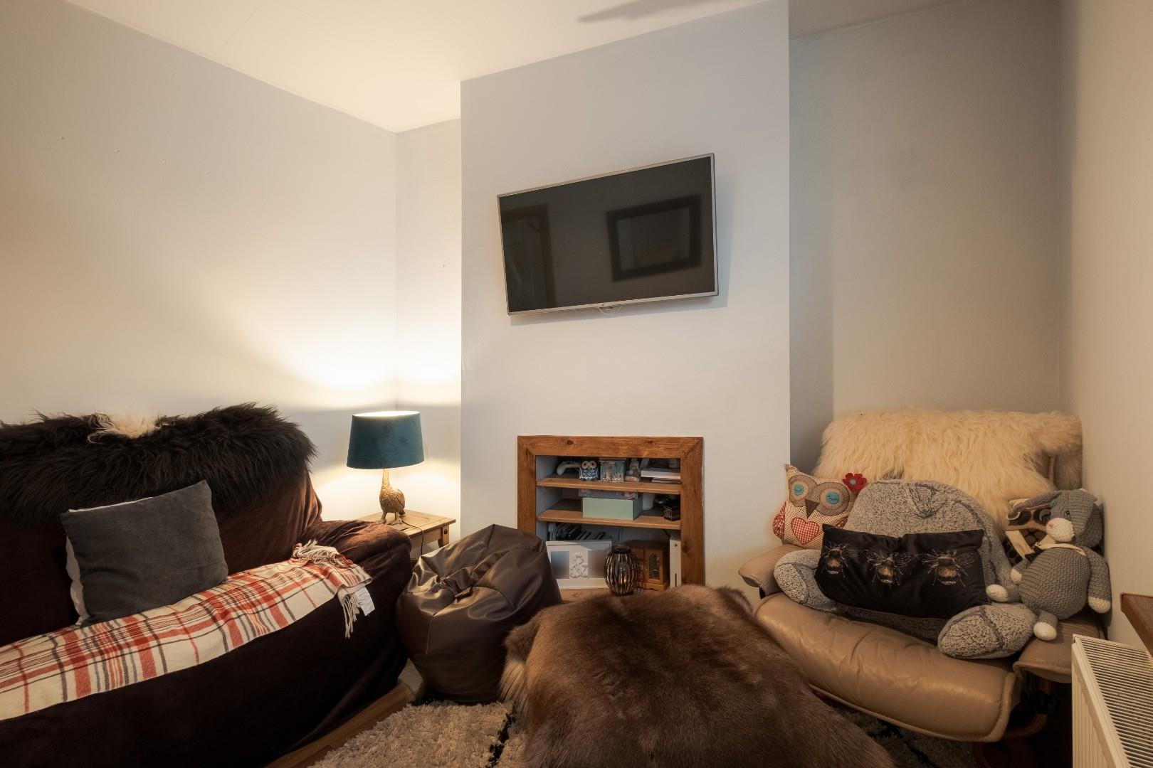 To the rear of the property is a kitchen/breakfast room, thoughtfully arranged with ample workspace and room for casual dining. Beyond the kitchen is access to the private rear yard, a low-maintenance outdoor space enhanced by a decked ‘yarden’, perfect for relaxing or entertaining. A particularly useful outbuilding/utility room sits to the rear, providing excellent additional storage and practical laundry space.