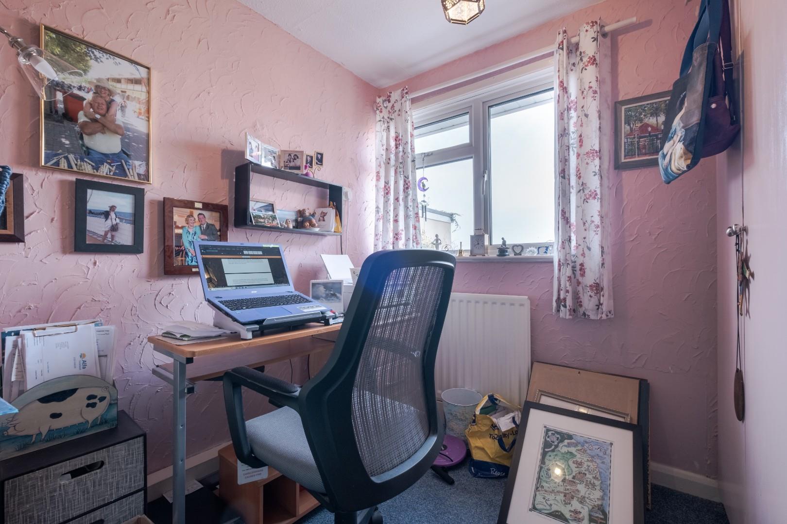 To the rear of the property, accessed from the inner hallway, is the garden room. This light-filled space features double doors opening directly onto the rear garden, creating a seamless connection between indoor and outdoor living.