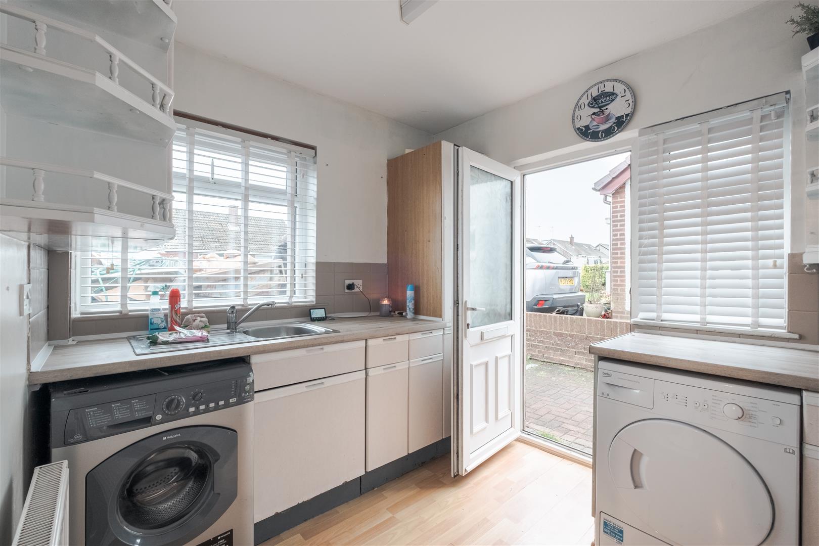 To the front of the property is the kitchen, fitted with a range of units and offering space for essential appliances, with a pleasant outlook over the front garden.