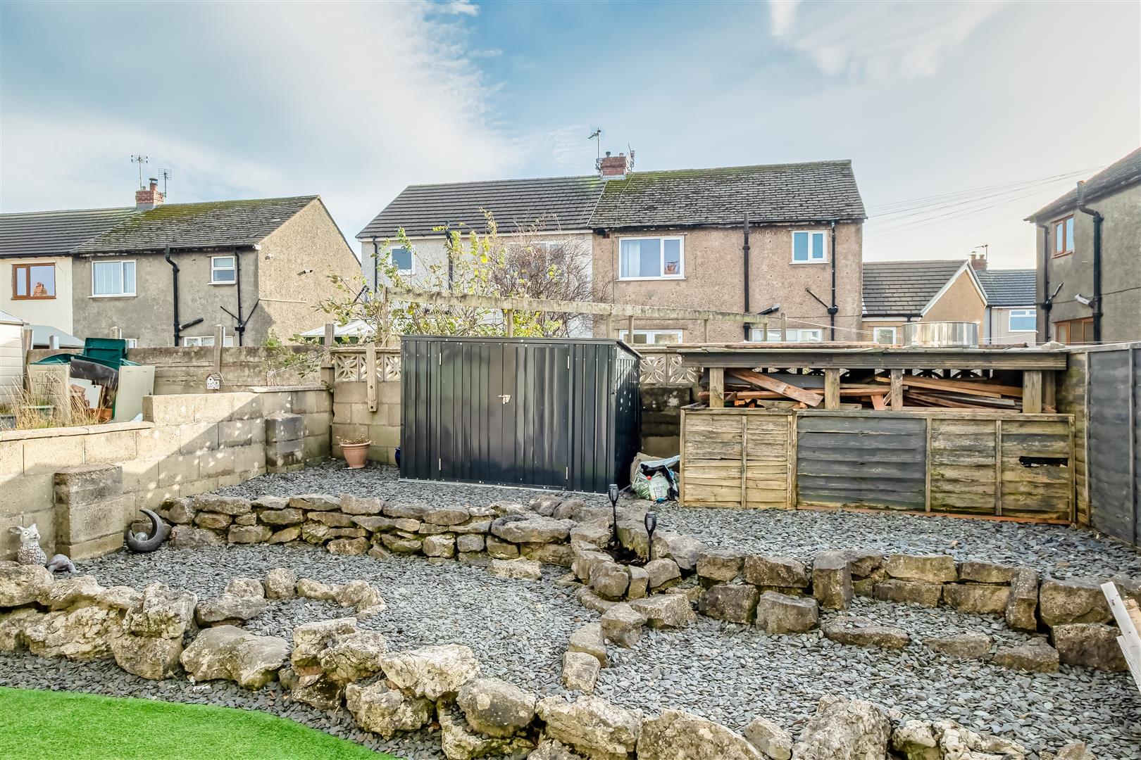 To the rear you will find a lovely garden to enjoy relaxing or entertaining in, with artificial grass to the first half, and an elevated slate chippings section at the rear.