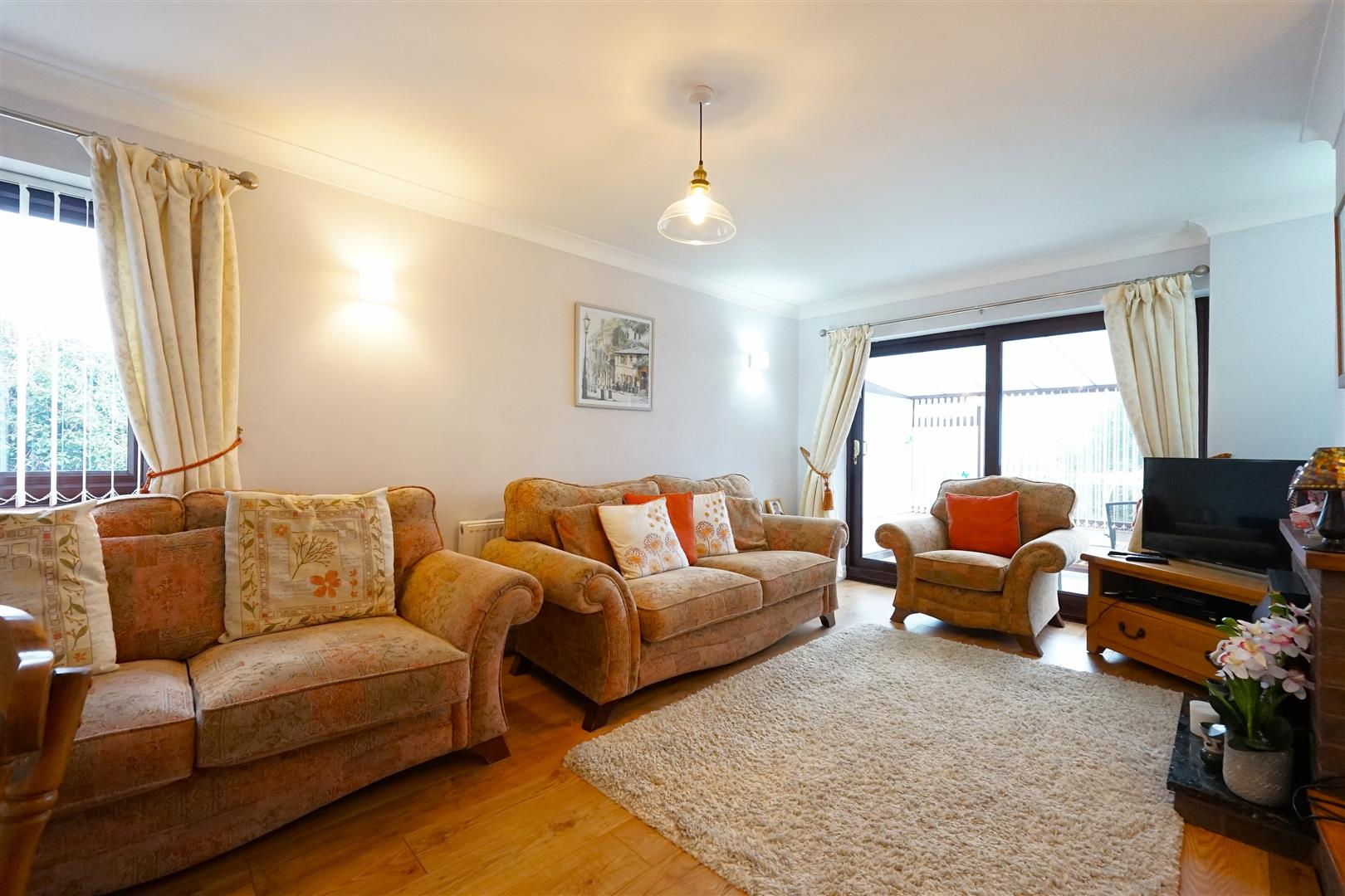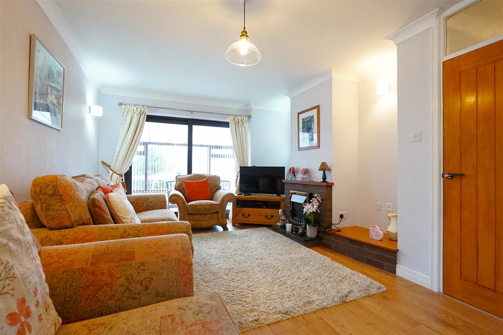 Moving through, you find the heart of the home. The living room is a warm and bright space flooded with natural light offering a cosy and airy atmosphere. Accessible from here is the conservatory at the rear of the property, which serves as a seamless bridge between the indoors and the garden, ideal for a morning coffee or a secondary lounge area.
