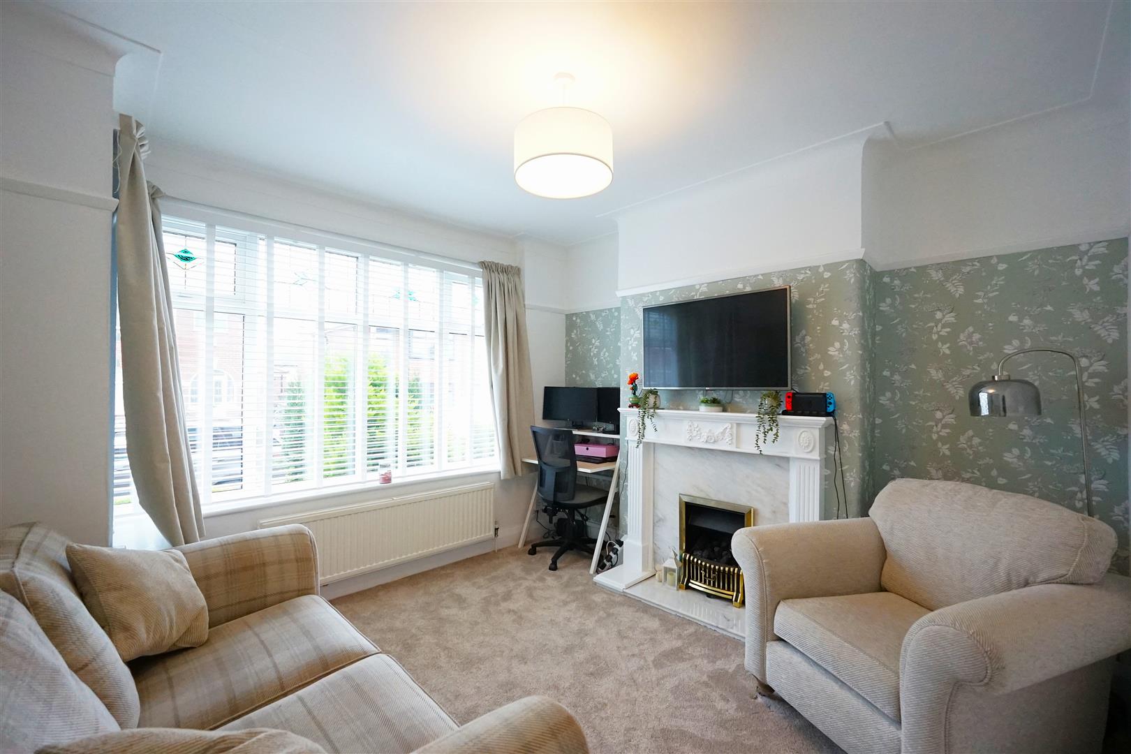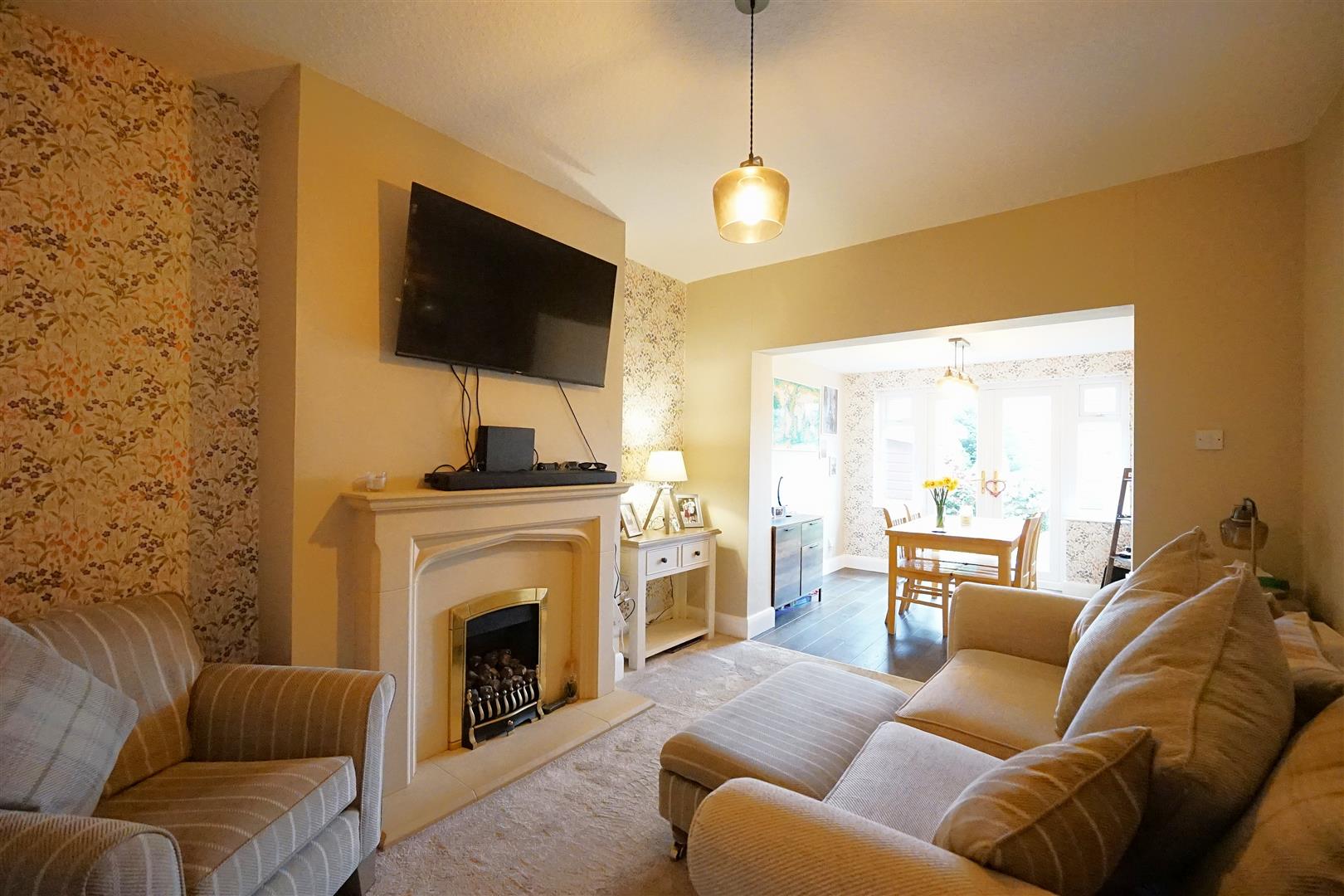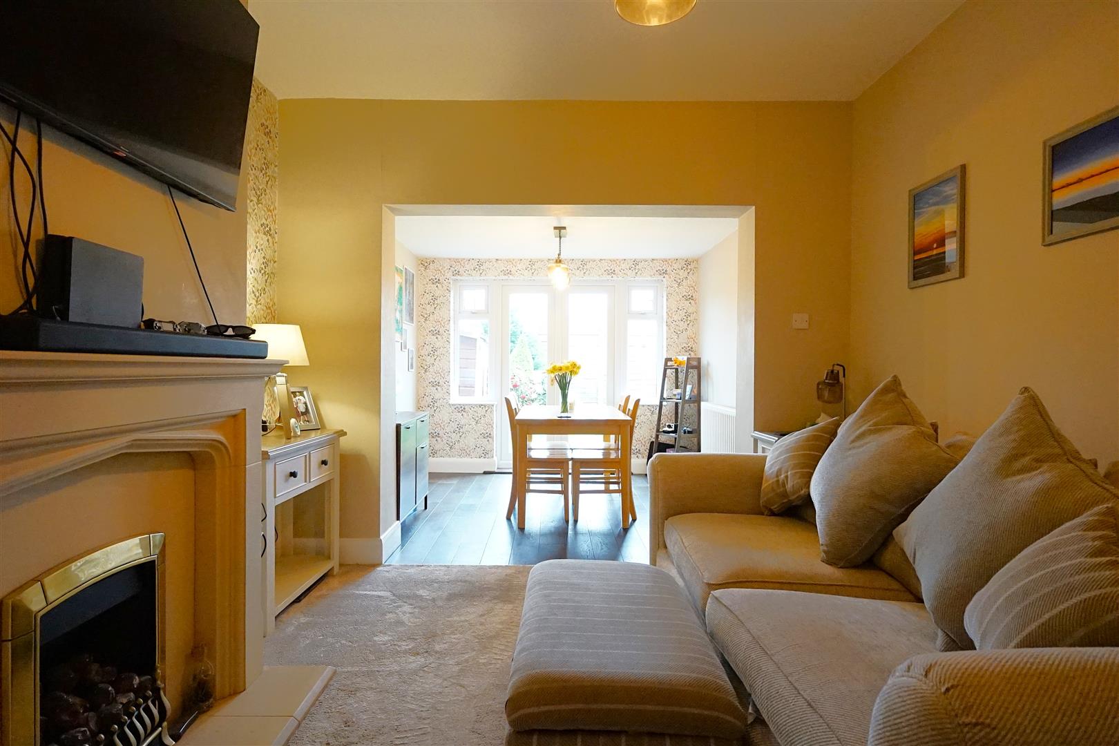 To the left, the home boasts an impressive arrangement of reception spaces. The front-facing lounge is bright and inviting, creating a perfect setting for relaxation. This flows seamlessly into a separate sitting room, offering flexibility as a family room or additional entertaining space. To the rear, the dining room enjoys a pleasant outlook and direct access to the garden, making it an ideal setting for both formal dining and summer gatherings.