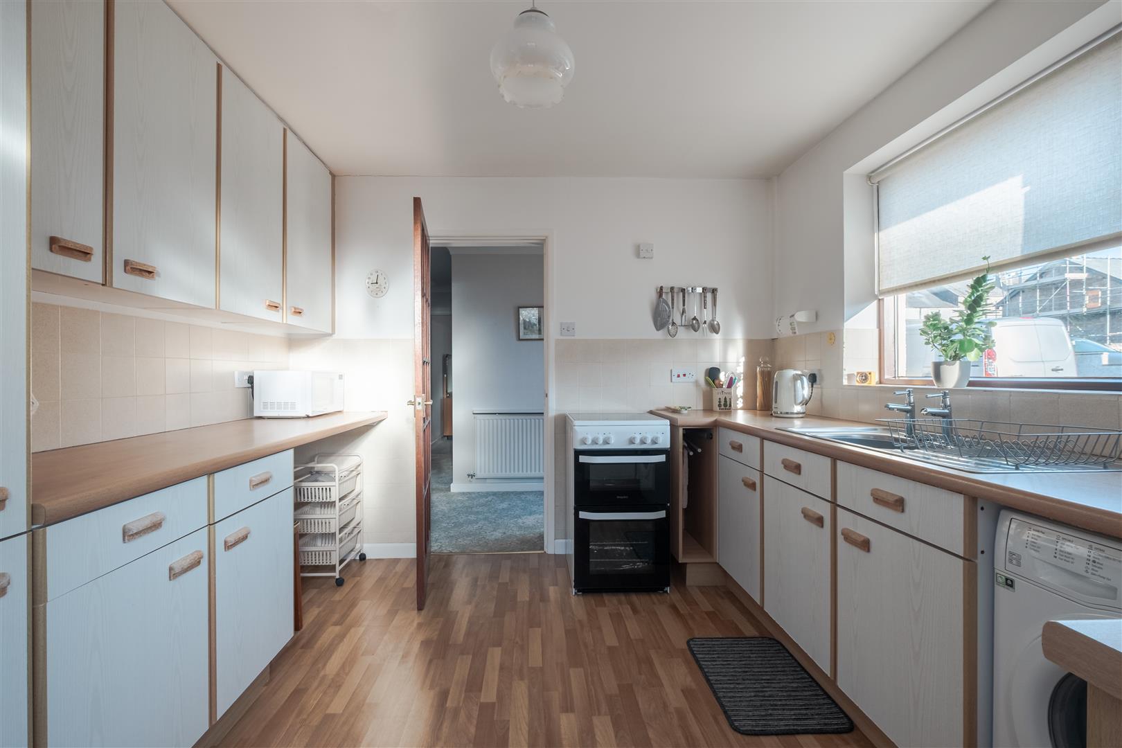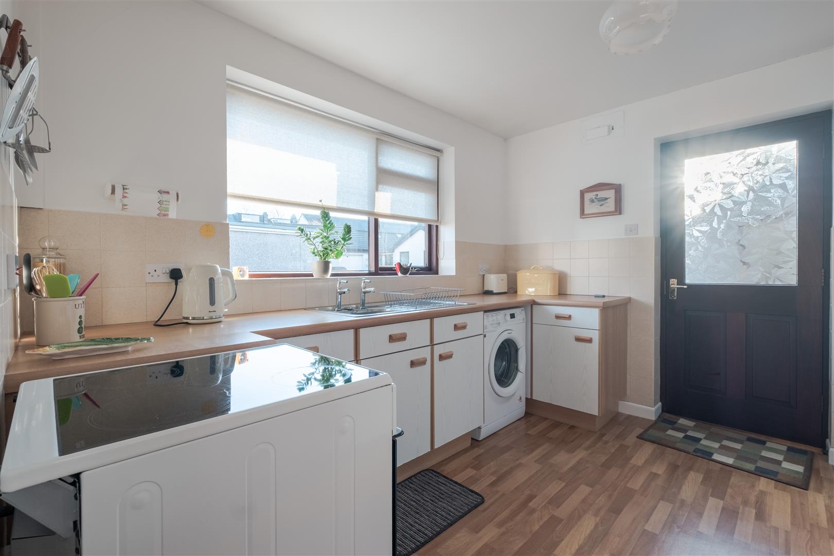 To the front of the property sits the kitchen, designed with a practical layout that includes ample cabinetry and workspace. Moving through to the heart of the home, you’ll find a spacious lounge, featuring large sliding doors that open out to the rear, flooding the room with natural light and offering a seamless transition to the outdoors. The garden provides an enclosed private grass space.