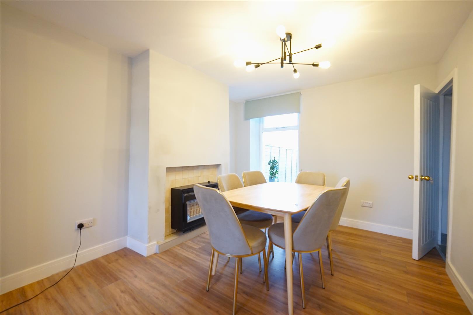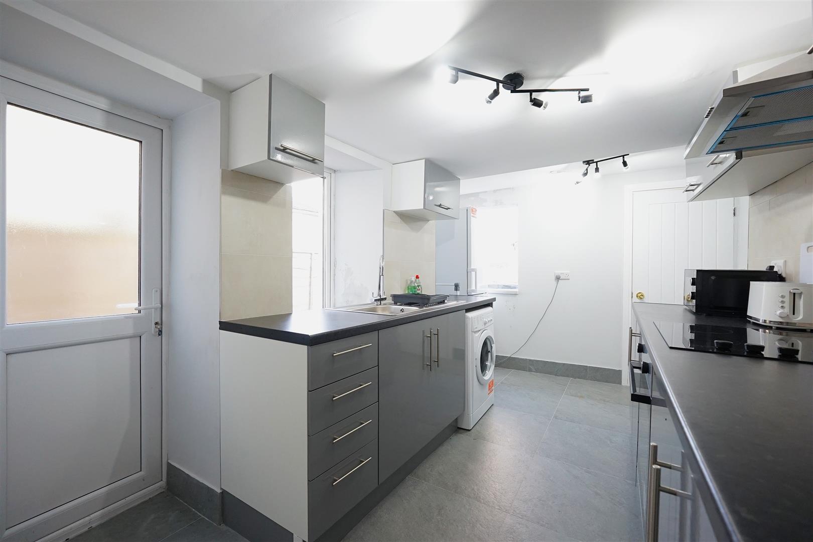 The kitchen is fitted with new grey base and wall units, complemented by a contrasting work surface. It features a single sink with mixer tap and inset drainer, along with a newly fitted cooker and hob. To the rear of the property is a newly installed shower room, comprising a WC, wash basin and shower cubicle, finished with tiled walls and flooring.