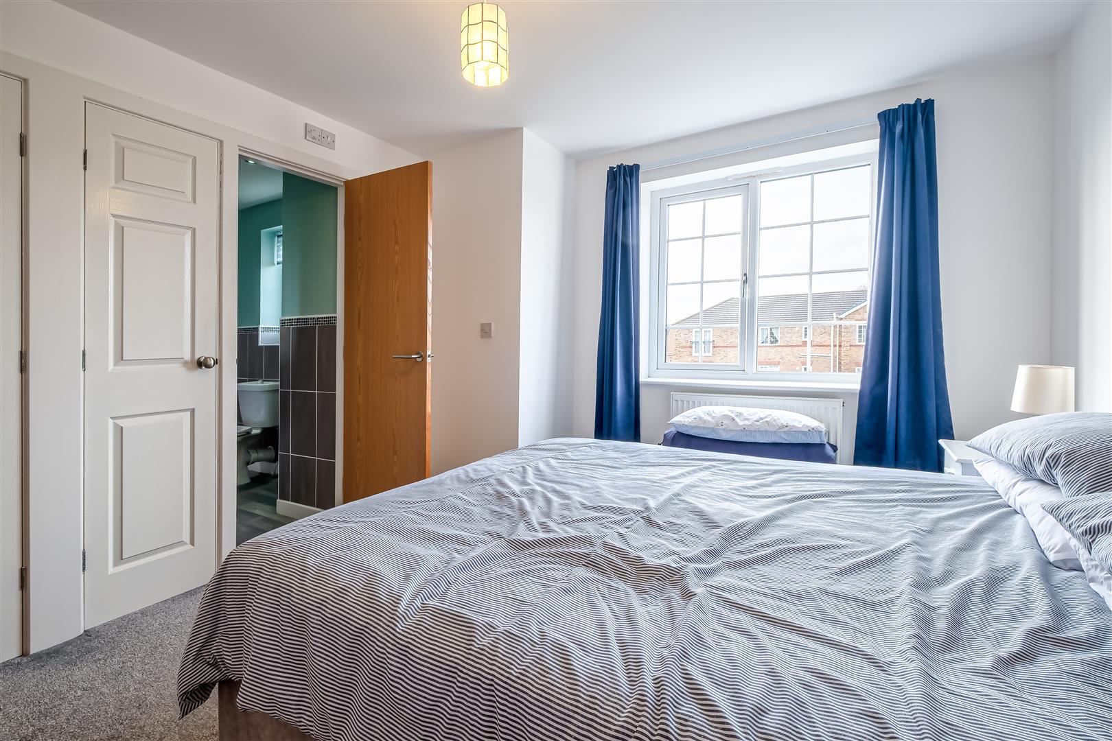 The master bedroom is a double room with ample space and features a three piece shower ensuite and neutral décor. The second bedroom is also a double room and there is a separate bathroom.
