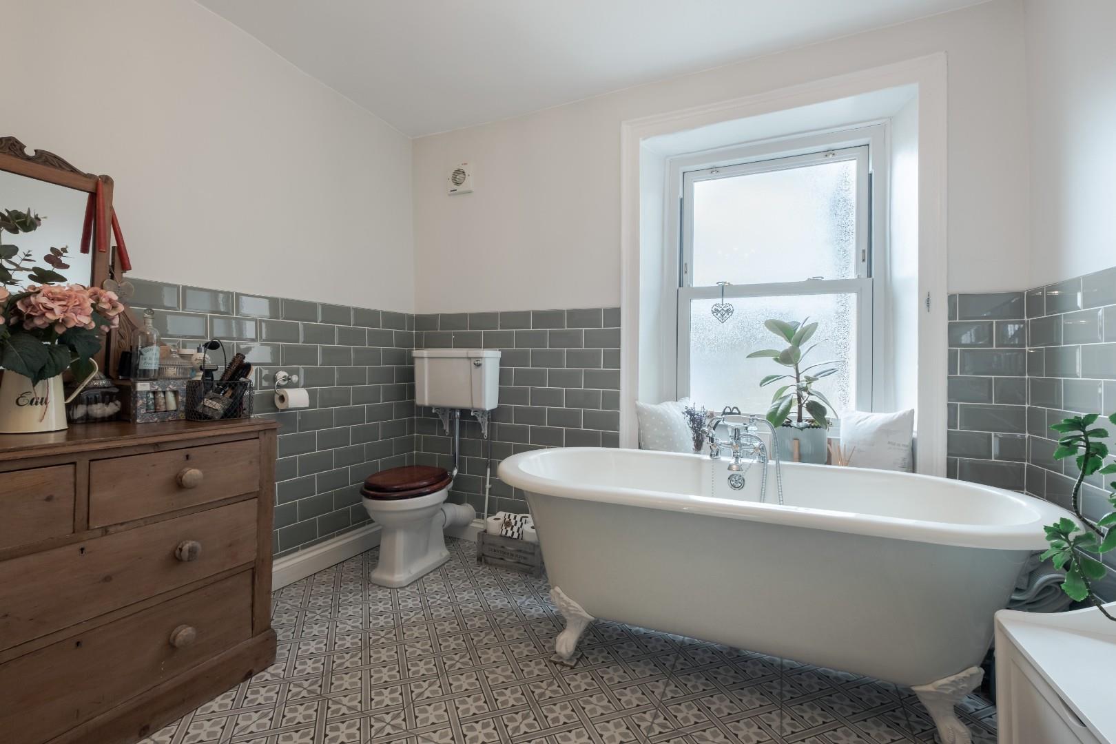 To the first floor, you will find the first bedroom which is being utilised as a lounge area, along side a stunning four piece family bathroom comprising of a claw foot freestanding bath with a telephone mixer tap, a wash hand basin and a mid level flush WC. There is also a corner shower unit. The second floor offers 2 great size bedrooms. The third floor is a developed attic with Velux window which provides plenty of natural light and superb views across the town.