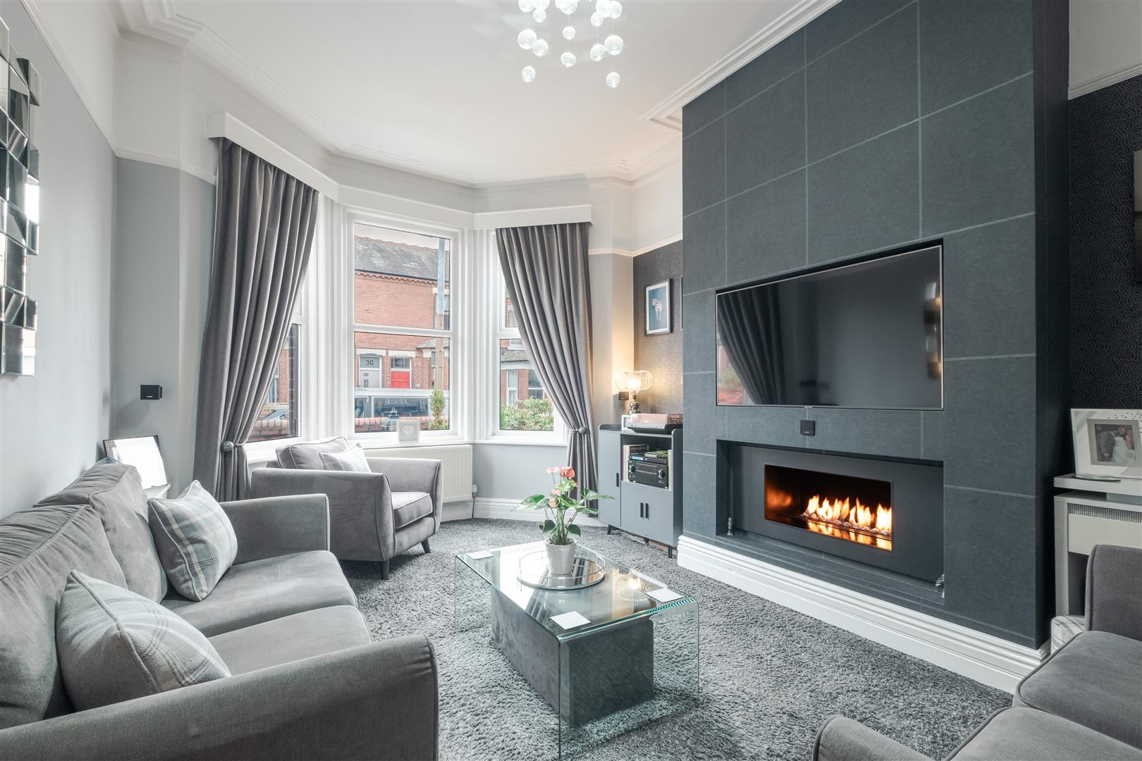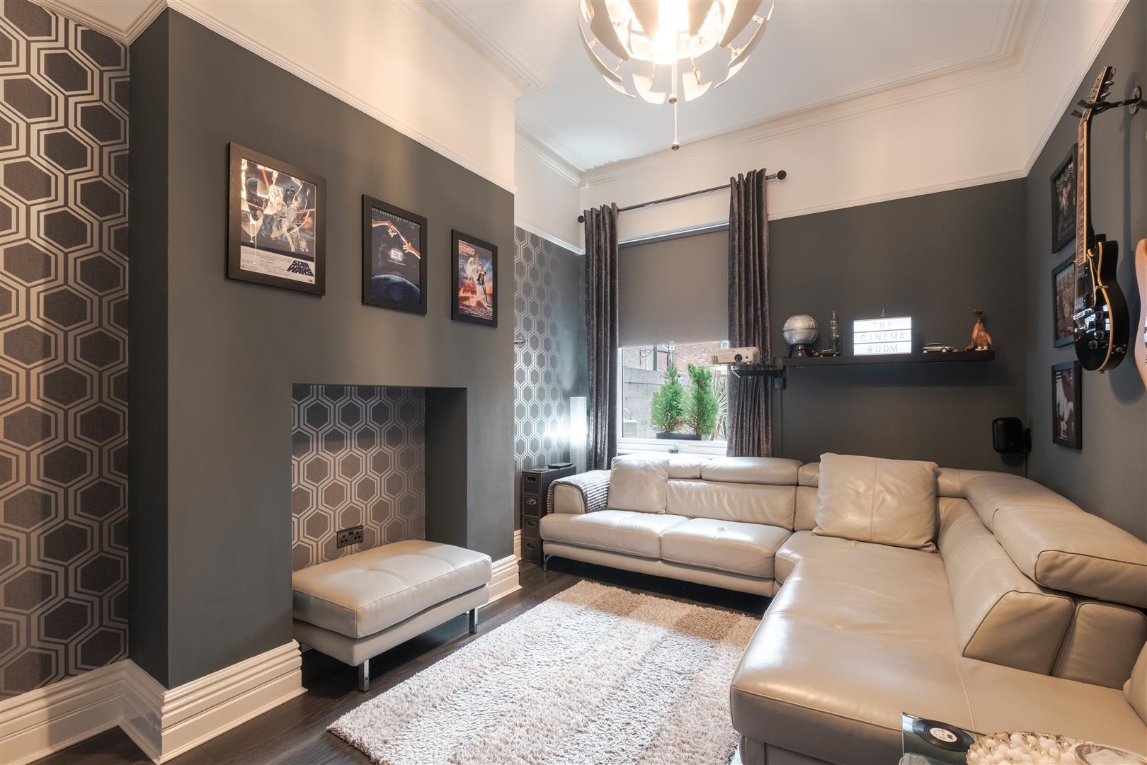 Upon entering the property, you are welcomed into a central entrance hallway that sets the tone for the well-planned accommodation throughout. To the front of the home is a bright and spacious lounge, enhanced by a bay window that fills the room with natural light and creates an inviting main living area. This room has a welcoming fire to the centre of the room, with grey decorated walls and carpets. Continuing through the hallway, you’ll find a versatile cinema room, ideal as a second reception room, media space, or snug. This room offers flexibility to suit modern living needs. The hallway then opens into a well-positioned dining area, providing an excellent space for family meals and entertaining with double doors leading to the yard. Adjacent to this is the kitchen, thoughtfully laid out with ample workspace and storage. A ground-floor WC is also located off the hallway, ideal for guests.